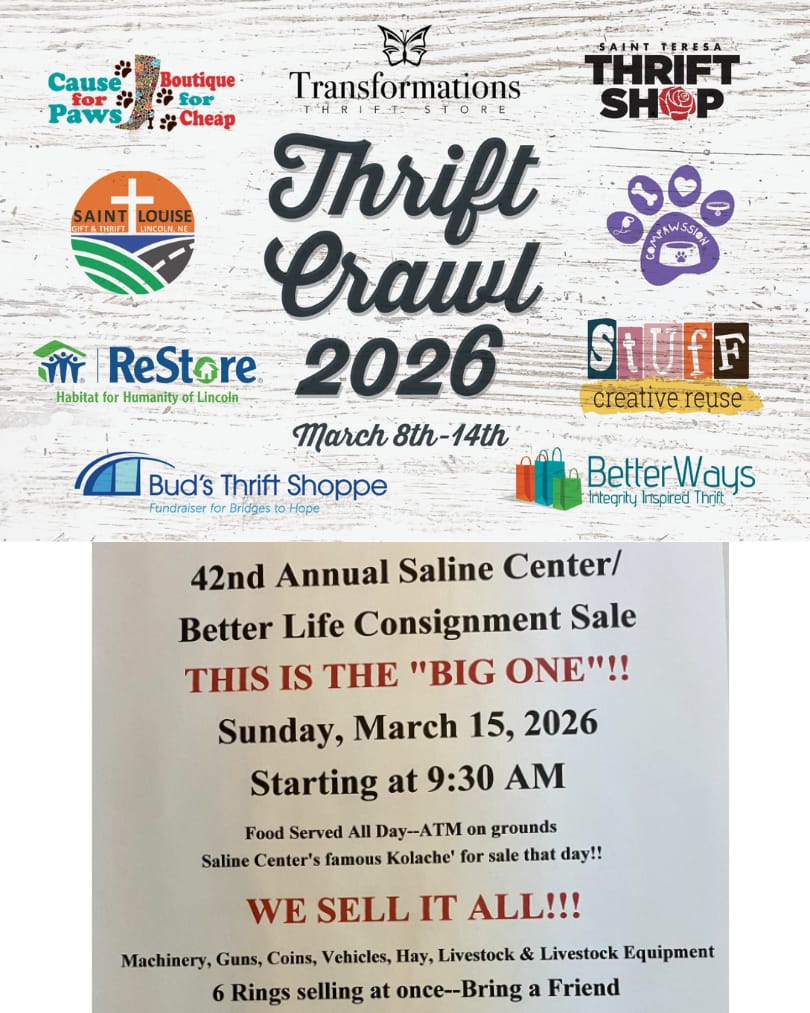And finally, if you're out for a Sunday drive and want to experience one of the most uniquely Nebraska events around, you have to check out the Saline Center Consignment Sale. It’s truly a must-see event.